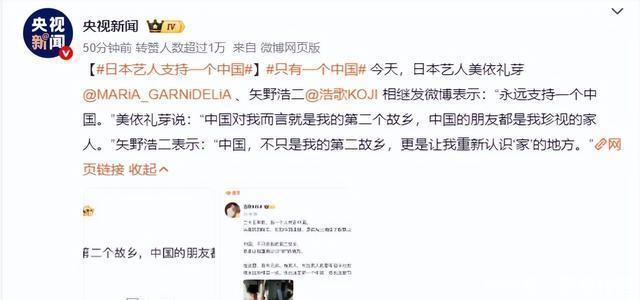 反观矢野浩二和美依礼芽等日本艺人。 虽无表明立场的义务,却主动表态支持一个中国。 他们的发声不是审时度势的作秀,而是对中国文化热爱的真情流露。